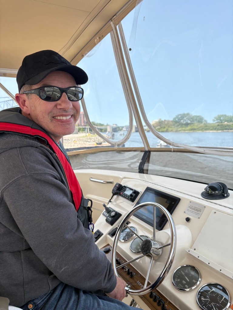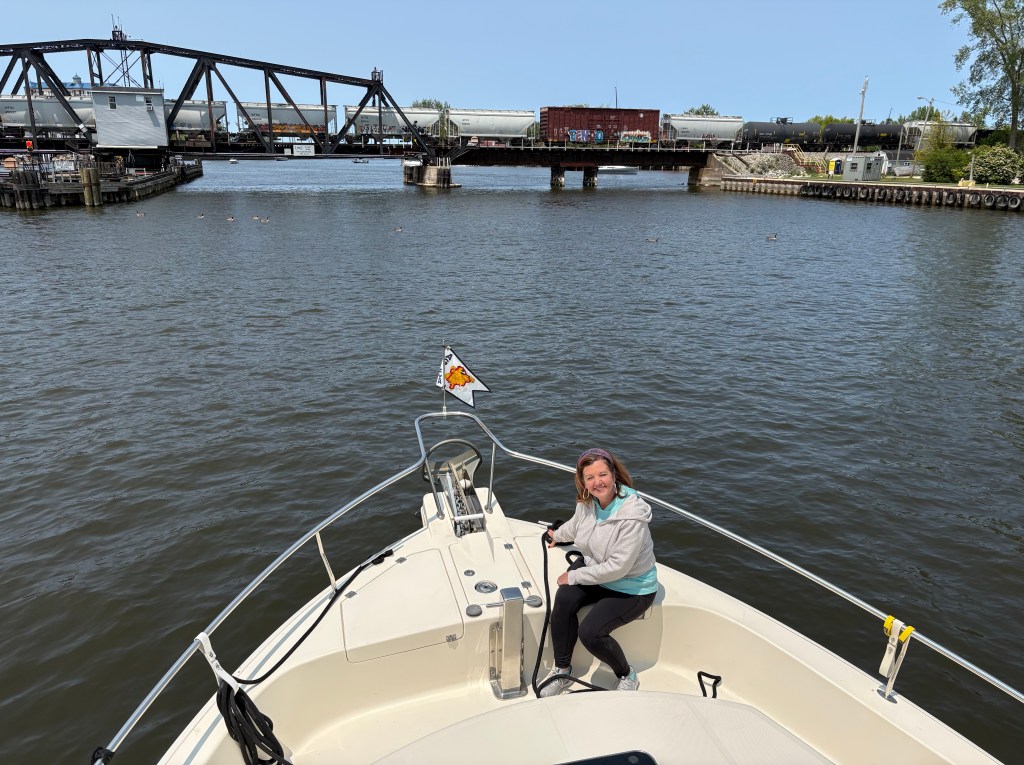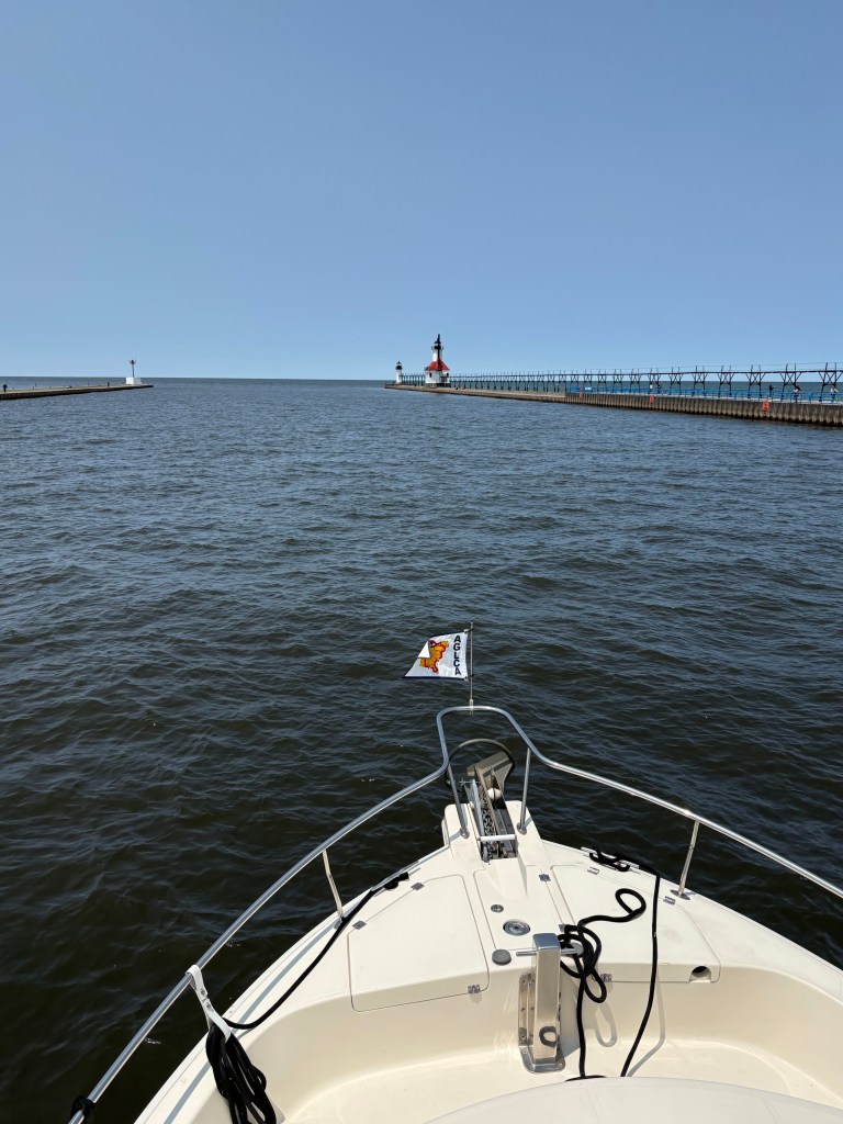 Finally, on Sunday, the boat was clean and the weather was better (55 degrees!! But clear and Sunny). We decided to launch for the first time in 2025. We left our slip, went over to the Marina and got fuel, then headed down the St. Joseph River and out to Lake Michigan. We anchored the boat and had lunch and then headed back.