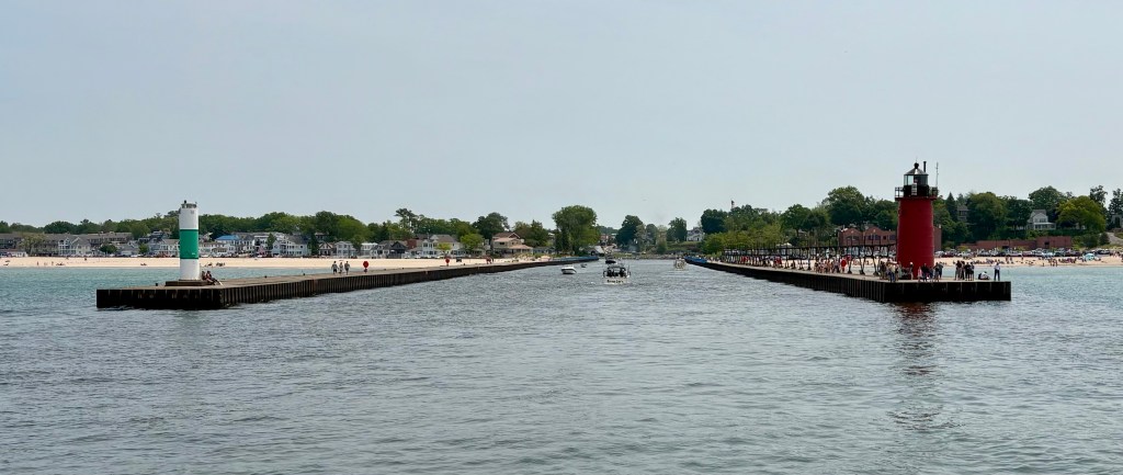 Last weekend we started our Looping adventure with a Day Trip to South Haven, MI. South Haven is about a 3 hour trip North of our Marina. We launched from our marina without incident and made our way out to the lake. It was a beautiful day with “calm seas”.