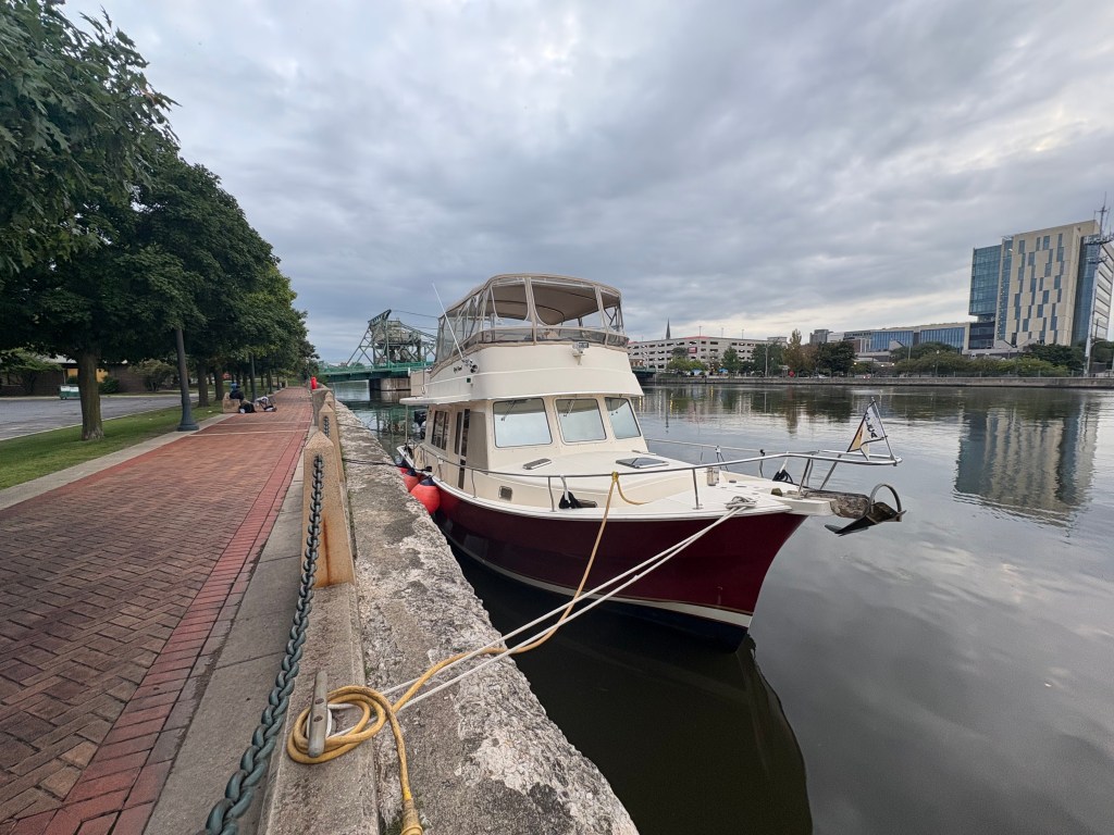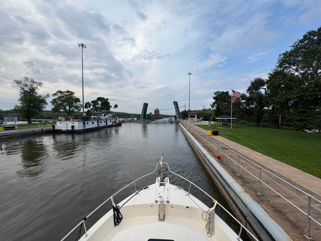 We made out way to Joliet, IL to the “Joliet Wall”. It is a free tie-up with electricity right by a park. We met another couple who were “looping” for the 2nd time on their boat, At Ease. Bob helped catch our lines and helped us tie up.