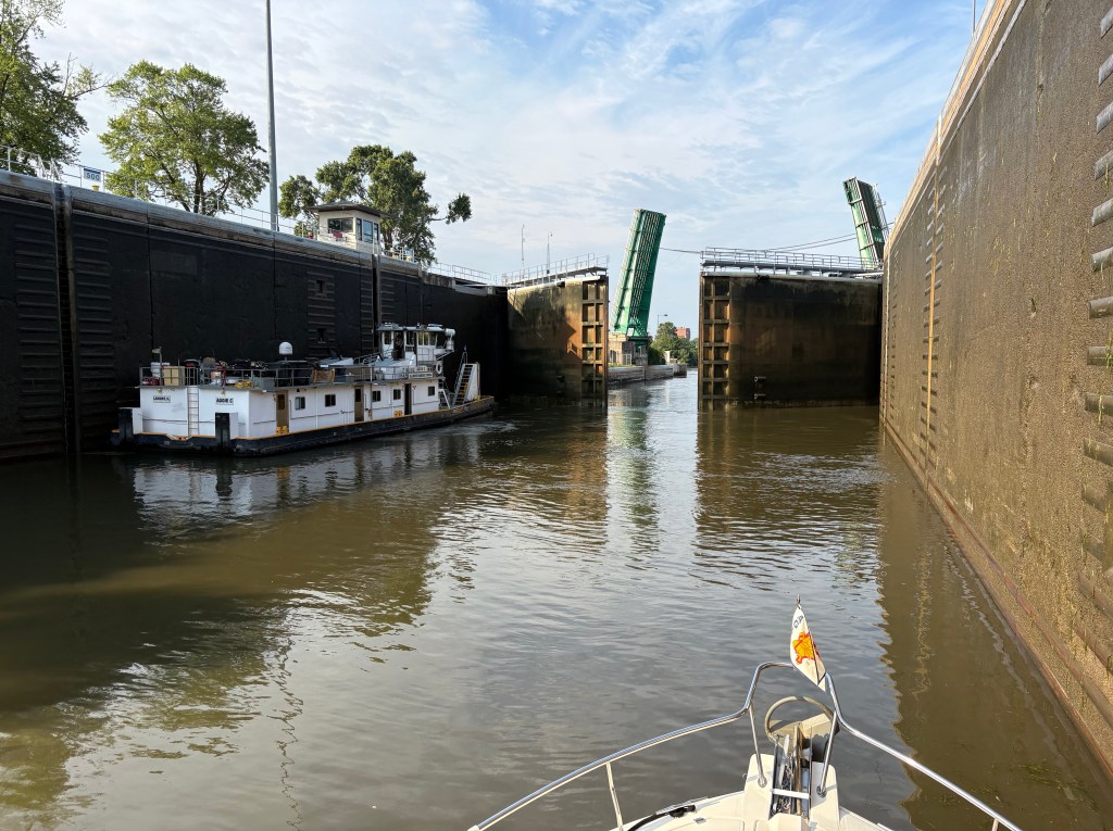 Saturday, we set out early, only to be stuck almost immediately at the first lock for around 2 hours. At Ease caught up with us and cruised with us for a good part of the day. We made our way through 3 more locks without too much trouble, with a 7 pm arrival at our next stop Big Bend Marina in Hennepin, IL. A long but successful day! 12 hours and 4 locks!