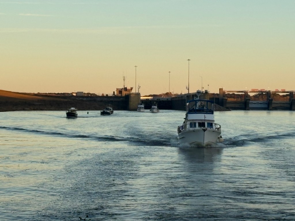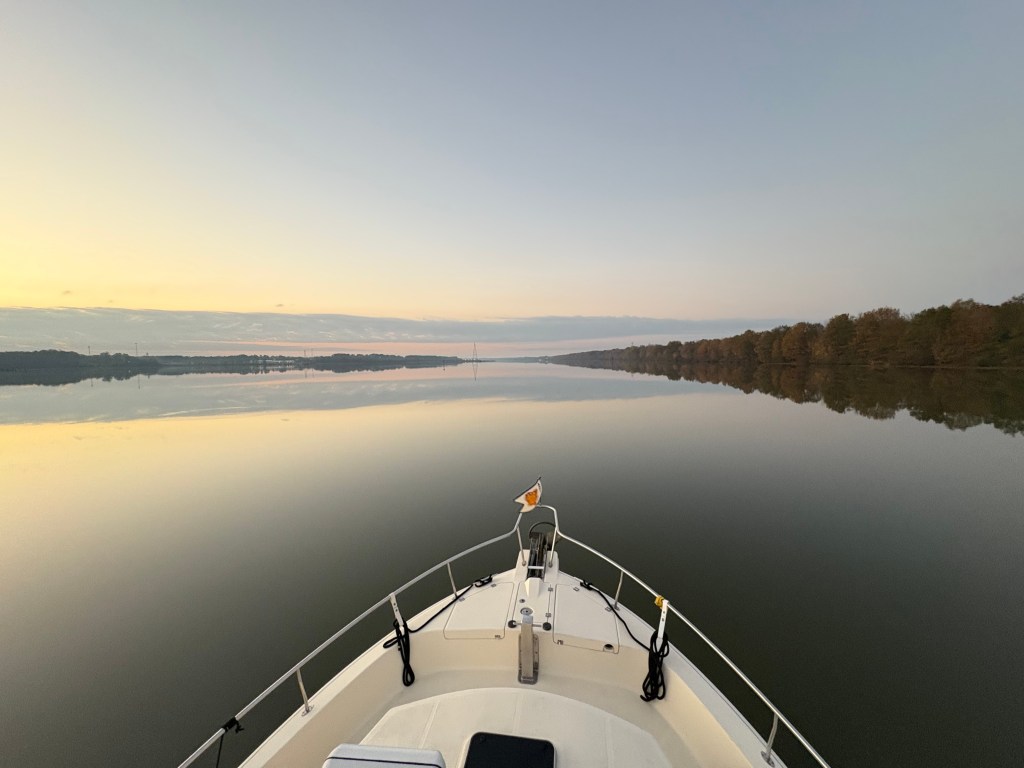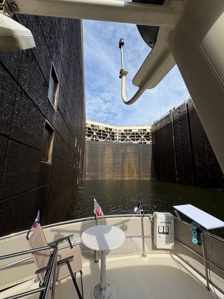 The next morning we left a 6 a.m. for another big day, 60 miles and 3 locks. 7 boats left the marina with us and we went straight into the lock. We then spent the day traveling with the 4 fastest boats. Of course, “fast” is relative as we cruise at 9 mph.