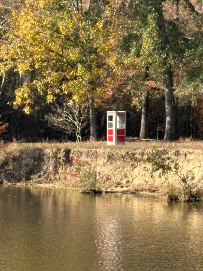 Some interesting sights along the way, including a phone booth on shore.