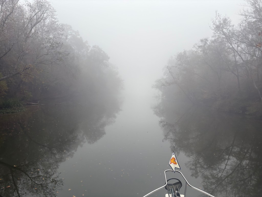 We made great time that day and arrived at a quiet anchorage for the night. The next morning we woke up to dense fog and and next to zero visibility. Our plan had been to leave at 6:30a, but we hung out until 9:30a when the fog began to clear. We traveled the day with Afta Hours and Missed Tee Time to our next anchorage.