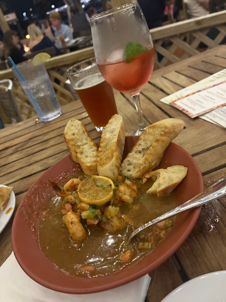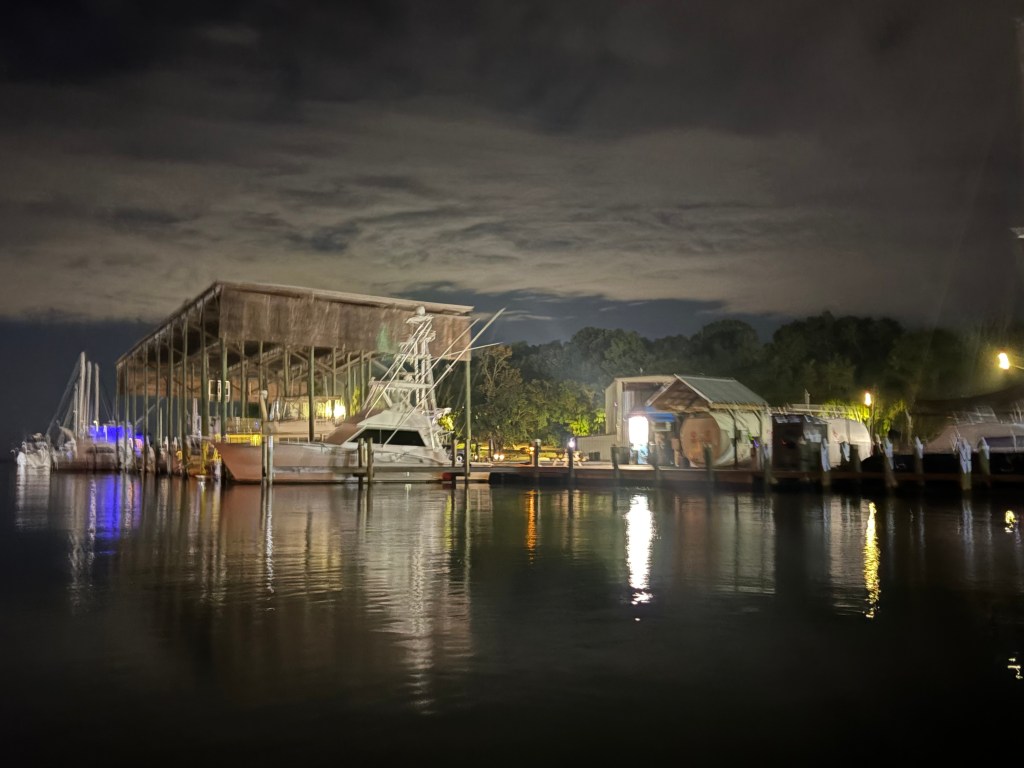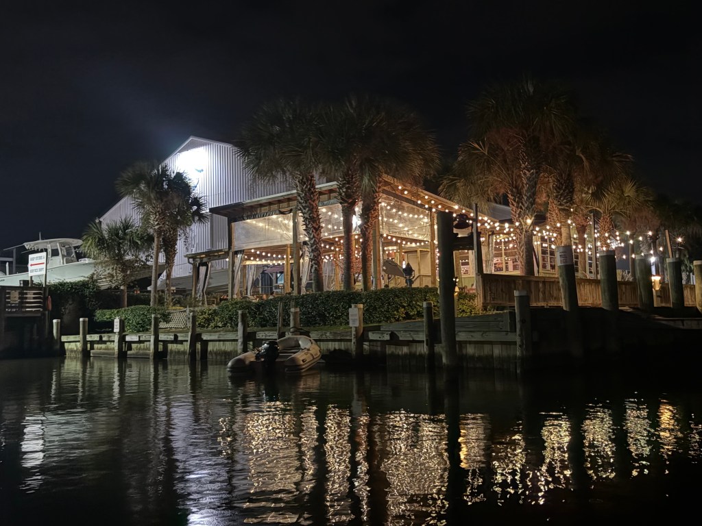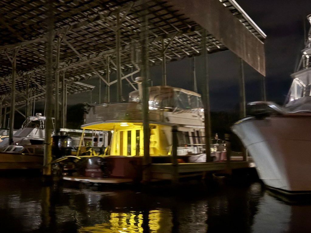 We made our way to a Marina in Fairhope, AL. We had dinner at a restaurant about 100 yards from our Marina but a 2 mile drive because of the water canals. We took our dinghy “Mini Pearl” over and had an amazing seafood dinner!