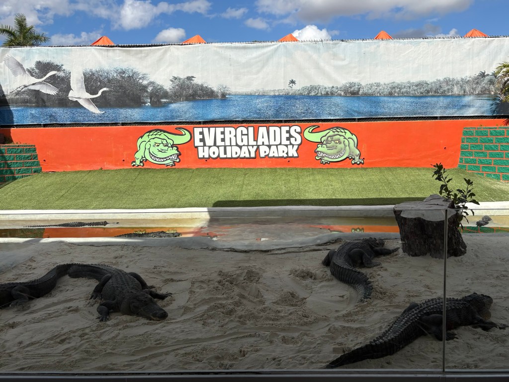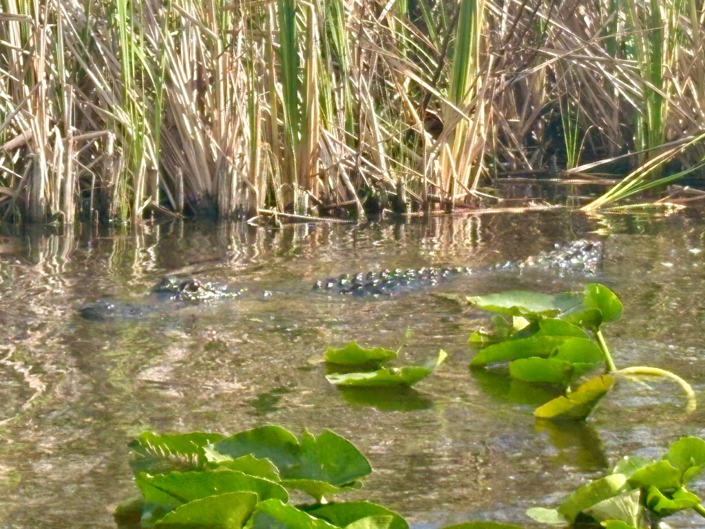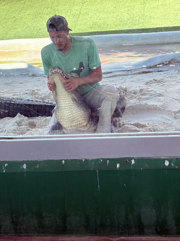 After seeing the ‘Gators in the wild we went to a show featuring rescued alligators. Amazingly, the ‘gator whisperer has trained them to respond to their names and even to music. Particular alligators will “come” when called either by his name or by a song!
