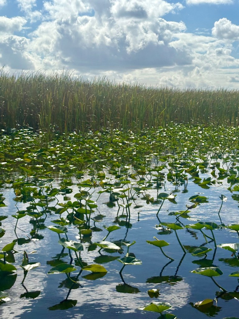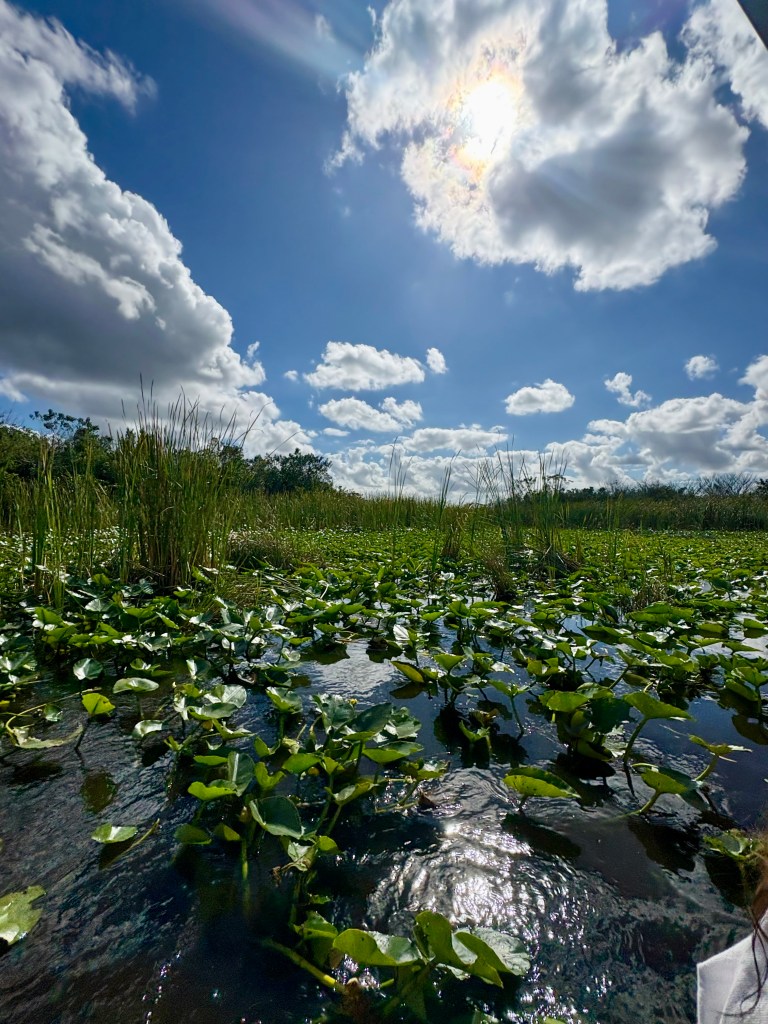 Saturday, we went to the Everglades. I had the expectation of a hot, smelly, buggy swamp. Not at all! The Everglades are beautiful! We took an air boat ride out to see the alligators!